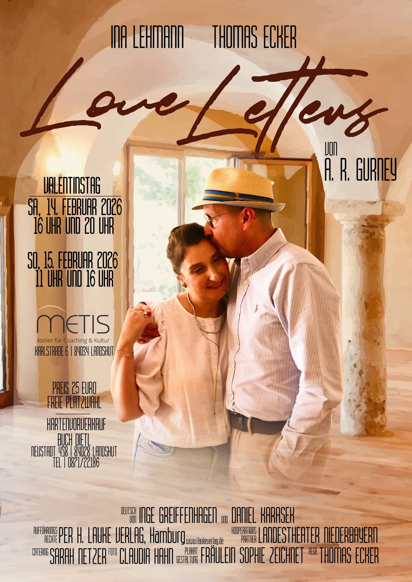 Am Wochenende des Valentinstags 2026 werden sich Ina Lehmann und Thomas Ecker bei uns im Kulturpunkt Die METIS in Landshut viermal der wohl berühmtesten Liebesbriefsammlung der Theaterwelt widmen: